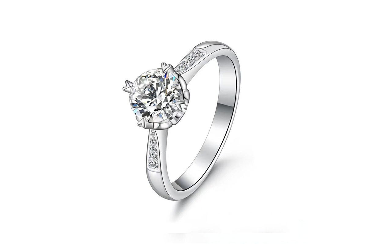 对钻戒表面相对粗糙部分进行精细打磨,使其光亮平整。在光滑的戒托上镀上一层金,增加整体品相和质感。